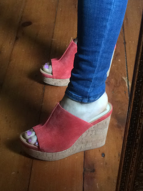 I was excited that Stitch Fix offers shoes now, and even more pumped to find some in my Fix! These wedges are bright and fun for spring, and I love a cork wedge. However, the price point was pretty high ($120) and if I am gonna spend that much on a pair of shoes it needs to be a style I would wear A LOT. This color won't work with a lot of outfits...so they were sent back.